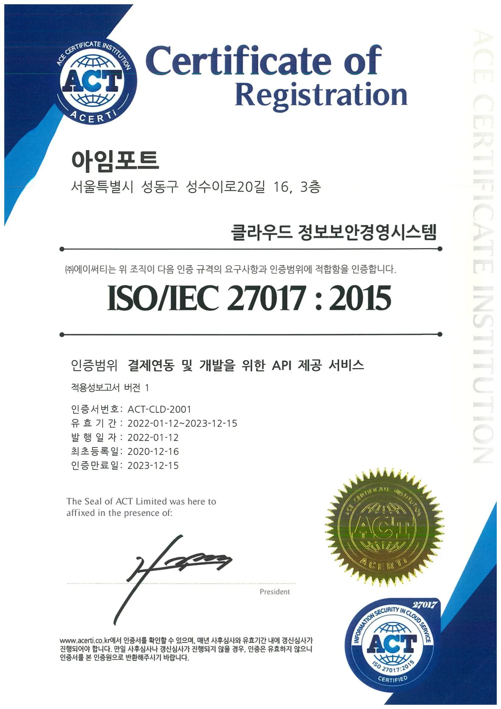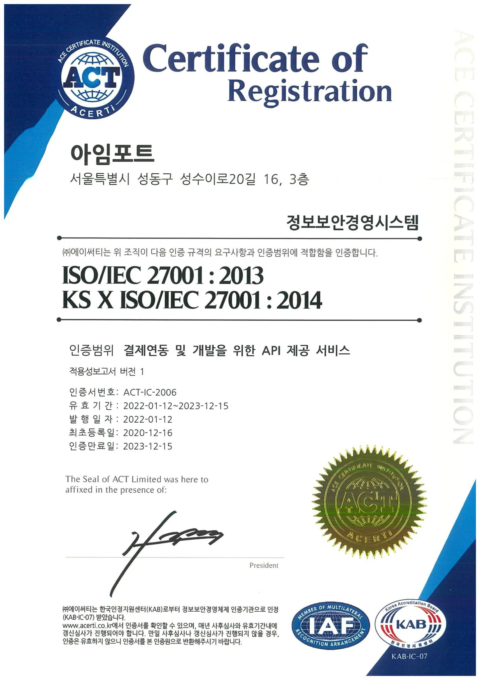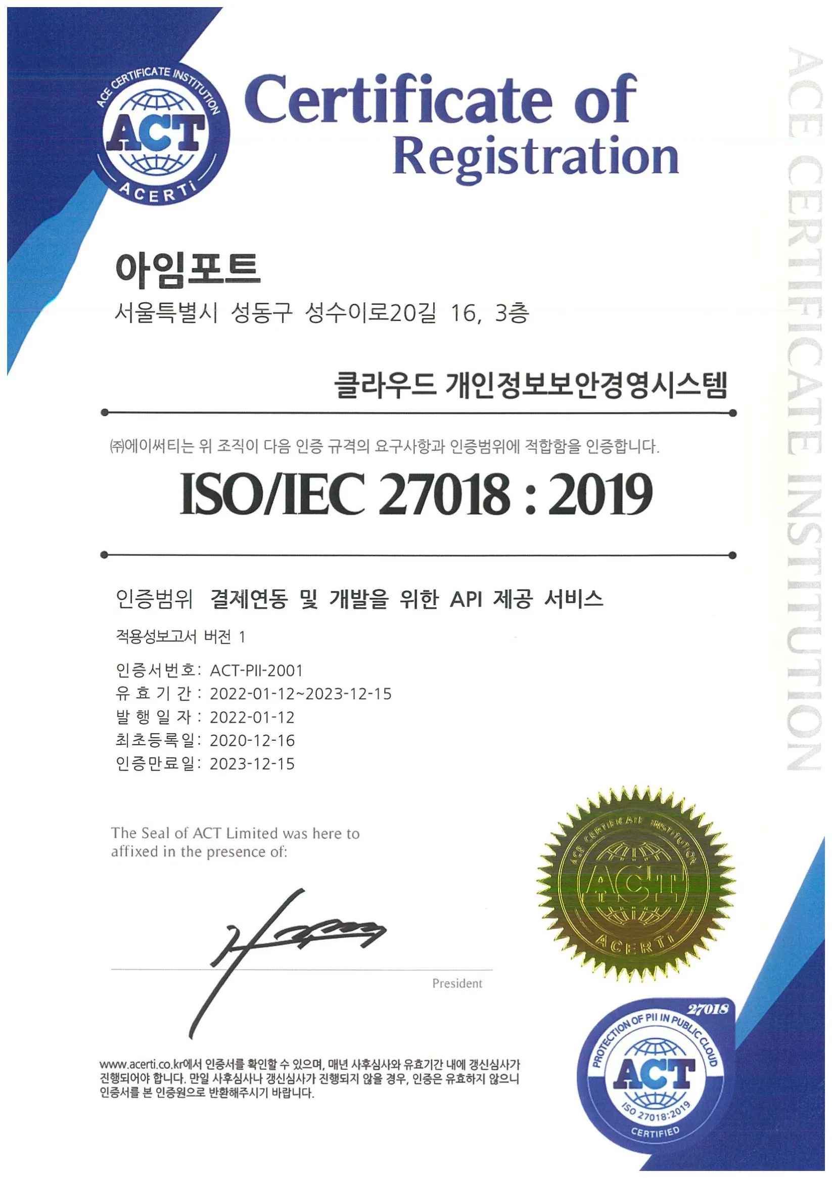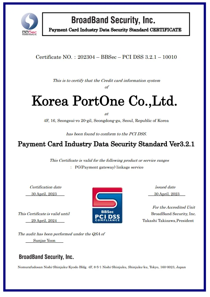 1. Current acquisition of information security-related certification in PortOne